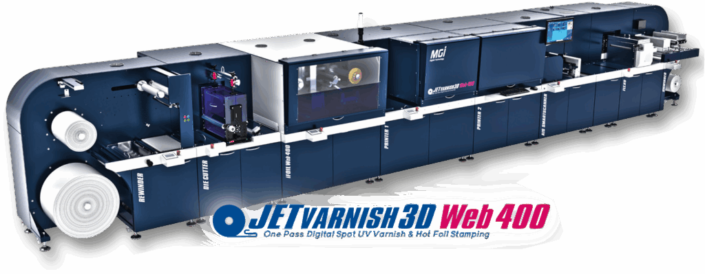THE MGI JETVARNISH 3D WEB 400 IS A DIGITAL EMBELLISHMENT SOLUTION DESIGNED TO ADD SIGNIFICANT VALUE TO LABELS AND PACKAGING.